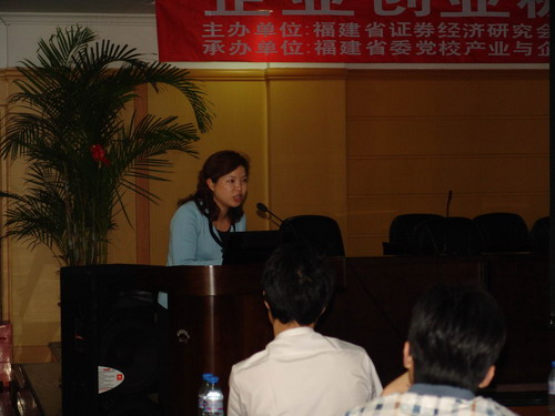 為貫徹落實《國務(wù)院關(guān)于推進(jìn)資本市場改革開放和穩(wěn)定發(fā)展的若干意見》和《福建省人民政府關(guān)于加快推進(jìn)企業(yè)上市的意見》精神,5月13日上午,福建省證券經(jīng)濟研究會、福建省生產(chǎn)力促進(jìn)協(xié)會主辦,福建省委黨校產(chǎn)業(yè)與企業(yè)發(fā)展研究院、福州市生產(chǎn)力促進(jìn)協(xié)會承辦,在福州舉辦“企業(yè)創(chuàng)業(yè)板上市研討班”。有關(guān)科技園區(qū)、創(chuàng)業(yè)中心的領(lǐng)導(dǎo)及60多家企業(yè)負(fù)責(zé)人共約100多人參加了研討班。研討班由福建省委黨校產(chǎn)業(yè)與企業(yè)發(fā)展研究院副院長林紅教授主持,福建省委黨校產(chǎn)業(yè)與企業(yè)發(fā)展研究院院長陳明森教授,福建省生產(chǎn)力促進(jìn)中心主任朱祥枝博士,福建省生產(chǎn)力促進(jìn)協(xié)會秘書長、福建省生產(chǎn)力促進(jìn)中心副主任李金算研究員出席了研討會開班儀式。李金算秘書長代表福建省生產(chǎn)力促進(jìn)協(xié)會致辭。