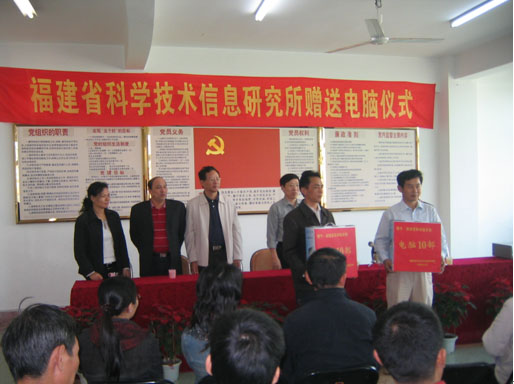 為支持基層科技信息化工作的開展,2008年11月20日,省科技信息研究所向漳浦縣科技局捐贈(zèng)電腦儀式在漳浦縣科技局舉行。省科技信息研究所所長(zhǎng)、研究員朱祥枝同志代表福建省科技信息研究所,向漳浦縣科技局贈(zèng)送10臺(tái)電腦,用于支持漳浦縣科技局培訓(xùn)中心建設(shè)。