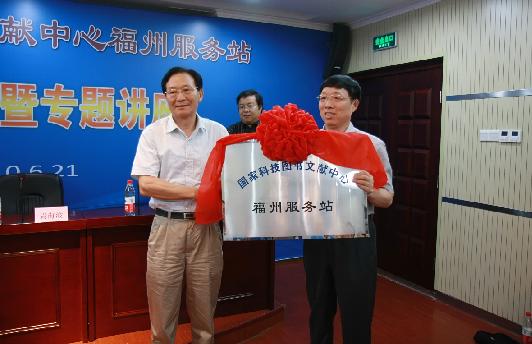 國家科技圖書文獻(xiàn)中心主任到會致辭并授“國家科技圖書文獻(xiàn)中心福州服務(wù)站”牌