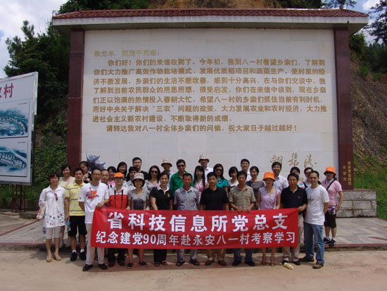 2011年7月22日,在舉國歡慶中國共產(chǎn)黨建黨90華誕之際,省科技信息所黨總支組織全所黨員,到胡錦濤總書記曾親臨視察過的村莊——永安八一村考察學(xué)習。