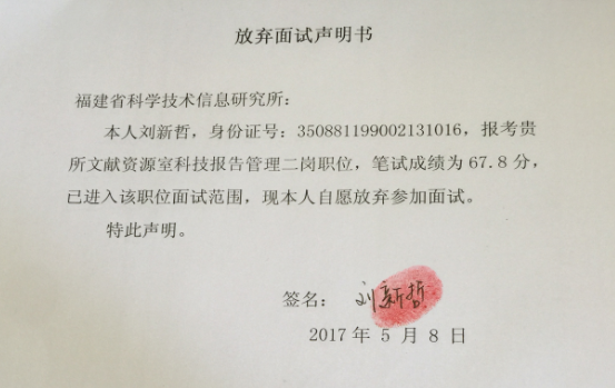 放棄面試人員:劉新哲1702001(準考證號),分數(shù)67.8,排名第三;遞補入闈面試人員:凌群 1702003(準考證號),分數(shù)67.7,排名第四。