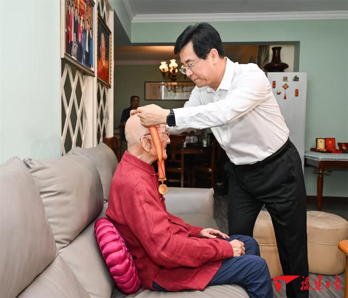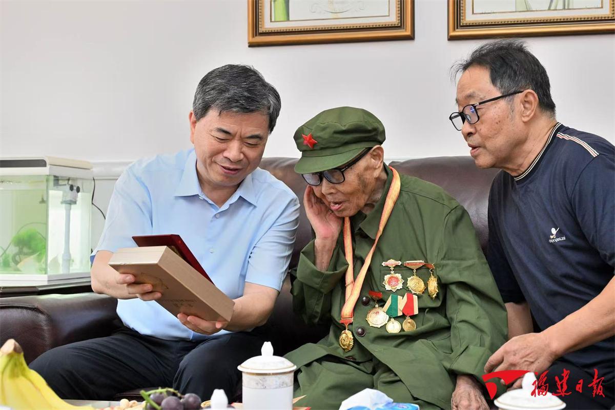 省領導分別來到張輝、李國元、趙宗信、王懷杰、張志一、張玲等抗戰(zhàn)老戰(zhàn)士家中,為他們佩戴紀念章,認真聆聽老戰(zhàn)士講述抗戰(zhàn)故事、回憶崢嶸歲月,感謝老戰(zhàn)士作出的歷史貢獻。省領導說,在各位抗戰(zhàn)英雄身上,充分展現(xiàn)了天下興亡、匹夫有責的愛國情懷,視死如歸、寧死不屈的民族氣節(jié),不畏強暴、血戰(zhàn)到底的英雄氣概,百折不撓、堅韌不拔的必勝信念。黨中央開展一系列活動紀念中國人民抗日戰(zhàn)爭暨世界反法西斯戰(zhàn)爭勝利80周年,再次充分彰顯了以習近平同志為核心的黨中央對抗戰(zhàn)老戰(zhàn)士的高度重視和深切關懷。福建是著名的革命老區(qū)、中央蘇區(qū),黨史事件多、紅色資源多、革命先輩多,具有光榮的革命傳統(tǒng)和鮮明的紅色基因。全省廣大黨員、干部群眾要永遠銘記為中華民族和中國人民作出貢獻的英雄們,傳承紅色基因,弘揚偉大抗戰(zhàn)精神,切實崇尚英雄、捍衛(wèi)英雄、學習英雄、關愛英雄,勠力同心為全省在中國式現(xiàn)代化建設中奮勇爭先而團結奮斗。要廣泛開展愛國主義教育,大力宣傳和弘揚各位老戰(zhàn)士的革命事跡和革命精神,從中接受精神洗禮、堅定理想信念,更好匯聚新時代新福建建設的磅礴力量。